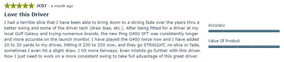 I scoured the internet in an attempt to find out what some players have had to say about their experience with the G400 SFT driver. Most people who have experience with this driver offer a glowing testimonial. Here are some review snippets: